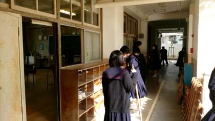 6時間目は全校一斉の大清掃。明日からの学年末テストをスッキリした状態で受けることができますね。陽射しがあるので寒さも幾分か和らぎ、清掃もしやすそうです。