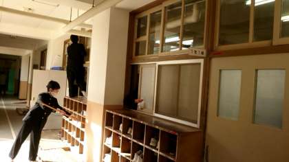 1年生の皆さんが清掃に励んでいます