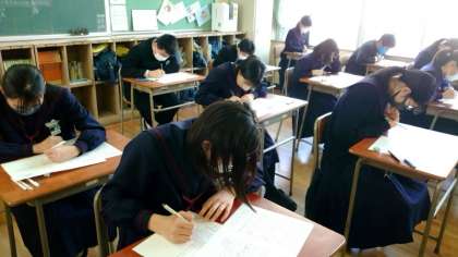 テスト2時間目「理科」が始まりました。2年生では天気図の問題が出ているようです。最近習ったばかりの単元ですね。皆さん記憶をふり絞って、授業で習った内容を思い出しています。