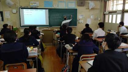 2年3組の数学の授業で文字式の計算力を高めています。今日は分配法則にポイントをしぼり計算をしています。たくさん練習して早く正確に解けるようになってくださいね。
