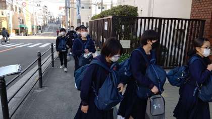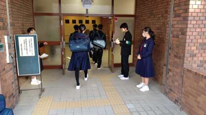 寒さの中にも心地よい朝、皆さん元気に登校しています。今日1・2年生は5・6限に防災教育の取組があります。体験しながらの学習も予定されています。しっかり学んでくださいね。