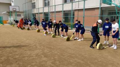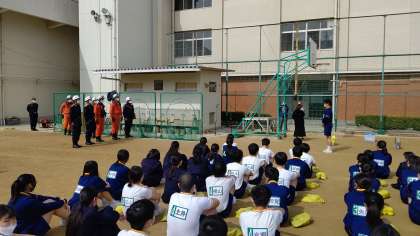 5・6限の時間を用いて1・2年生で防災教育が行われています。天王寺消防署と天王寺区役所市民協働課の職員の方にお越しいただき、防災について学んでいます。しっかり学んで災害の備えにつなげてくださいね。