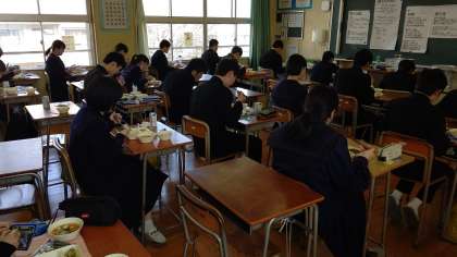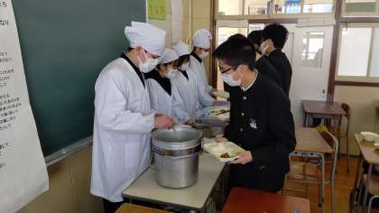 3年生にとっては最後の給食となりました。しっかり味わって食べてくださいね。各クラス、準備や配膳で最後までしっかりと協力できていました。