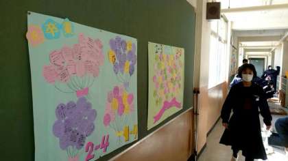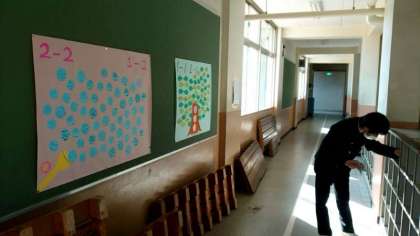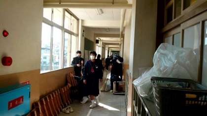 午後になり、後輩たちが卒業式の準備に取り組んでいます。お祝いメッセージも出来上がりました。