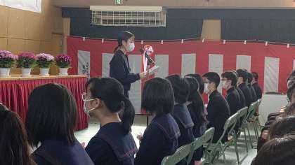 在校生から卒業生にむけて、そして卒業生から在校生にむけて最後のことばが伝えられました。先輩方のバトンが後輩に渡されましたね。在校生の皆さんは先輩の思いを胸にしっかり高津中を支えていってくださいね。
