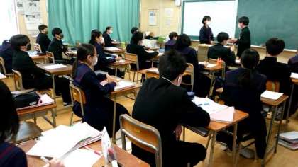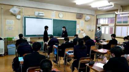 1年生英語科で英会話の学習中。お店でのお客さんと店員さんのやりとりを英語で表現します。飲食店や服屋さんなど、業種もさまざま。会話のできばえは、みんなで評価。どのペアが良かったですか?