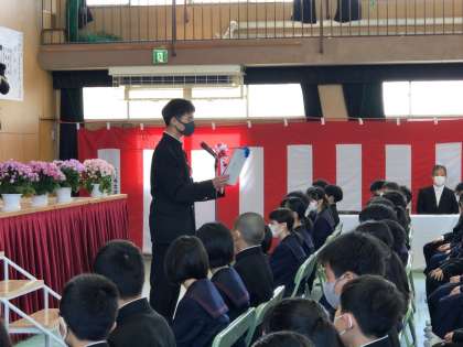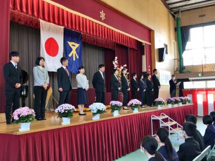 先輩から歓迎のあいさつをいただいた後、学年の先生方の紹介です。これから1年間、よろしくお願いいたします。
