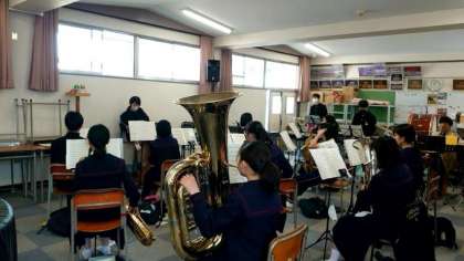 音楽室から素敵な音色が聞こえてきました。吹奏楽部の皆さんが部活動見学時に演奏する楽曲を練習しています。部活動見学は、来週水曜日から3日間実施されます。新入生の皆さん、楽しみにしてくださいね。