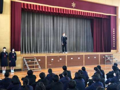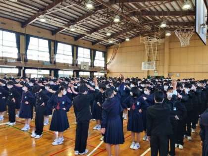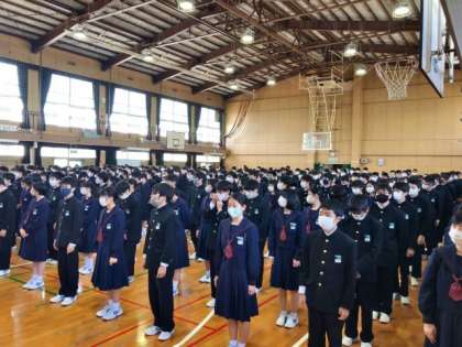 令和4年度始業式を行いました。全校生徒が集まるのはこれが最初。新しいクラスも発表され、気持ち新たに頑張りましょう!