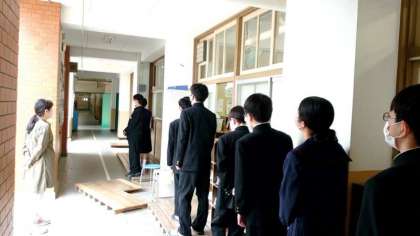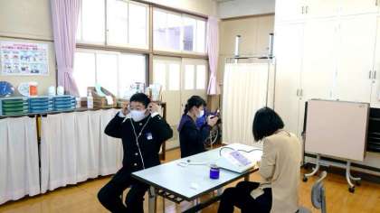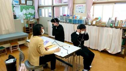 新学期は生徒の皆さんの健康を診る検診がたくさんあります。今日は1年生の聴力検査を実施中。皆さん、マナー良く受診しています。