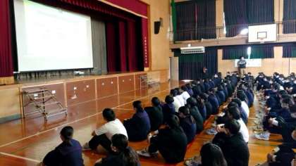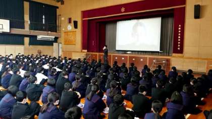 生徒集会後、NTTの方からスマホや携帯電話の使い方についてお話を聞きました。SNSで互いにメッセージをやりとりする中、相手に誤解されたり、傷付けたりするケースがあります。便利なツールだけに、使い方について気をつけたいですね。