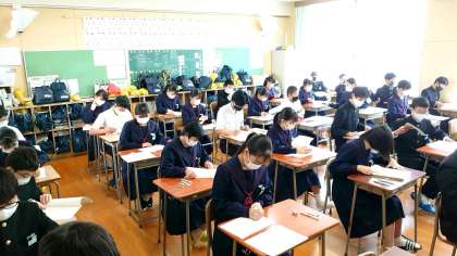 全国学力学習状況調査の3時間目。理科のテストが始まりました。教科のテストはこれが最後。集中力を切らさずに、あともう少し頑張りましょう。