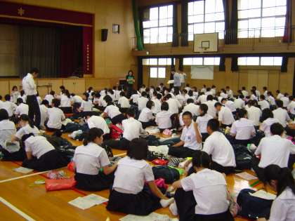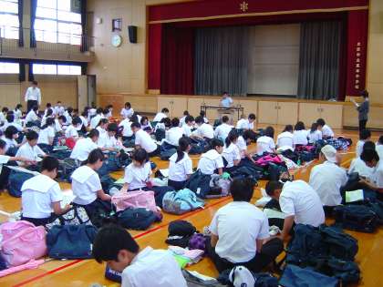 5日は、事前指導を講堂で行いました。