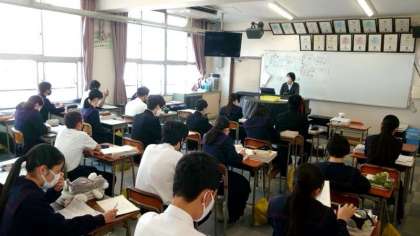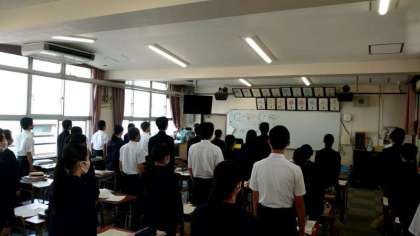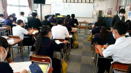 3年生音楽の授業で高津中学校の校歌を歌う、歌唱テストが行われています。歌詞はしっかりと頭に入っているでしょうか?生徒手帳を見て再確認しておきましょう。