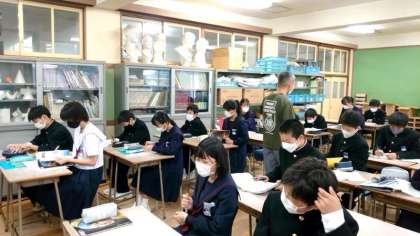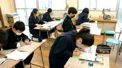 1年生美術科で「絵文字」を考えます。これまで教わったレタリングの技法も活用し、オリジナルの絵文字を創作します。アイディアが浮かぶまでが大変ですね。ユニークな作品を楽しみにしています。