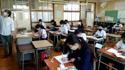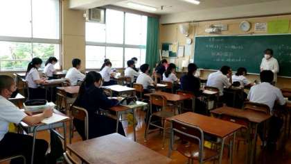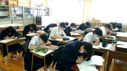3年生数学科で少人数授業が行われています。現在習っている因数分解の解き方について、クラスを分割して教わります。わからない点はどしどし質問してくださいね。