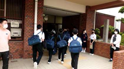 3連休明けの朝。皆さん元気に登校してきました。家庭訪問も終わり、今日から6時間授業が再開します。本日の放課後16時から1、2年保護者向けの「一泊移住(宿泊行事)説明会」を体育館で行います。