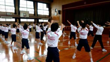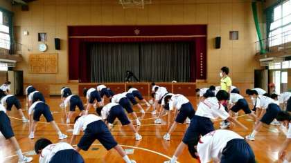 1年生体育の授業でラジオ体操に取り組みます。姿勢や腕の振り方・足の動きなど1つ1つ丁寧に教わります。全員の動きが揃うと、とても美しいですね。