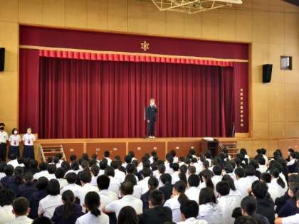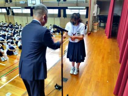 月曜日の朝は全校集会の日。立夏を過ぎ、?の上ではもう夏に入りました。学習や運動に適したシーズンの到来です。仲間と一緒に、充実した学校生活を送りましょう。