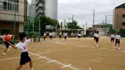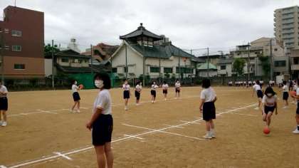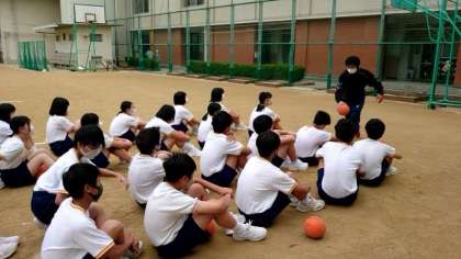 2年生体育科で、スポーツテストが行われています。今日はハンドボール投げにチャレンジ。先生から説明を受けた後、まずはウォーミングアップから。腕の力だけでなく、身体のバネを意識するのがポイント。満足いく結果が出ると良いですね。