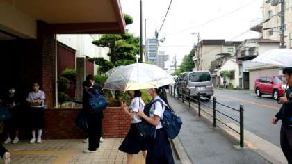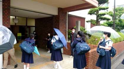 雨の朝を迎えました。皆さんカラフルな傘を手に登校してきました。今日は1年生の皆さん中心に心臓検診があります。体操服(上着)の用意は大丈夫ですか?