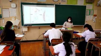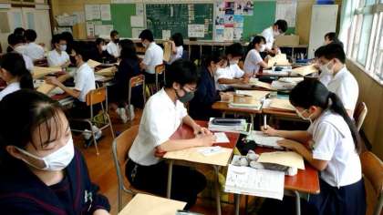 3年生理科の授業で「メンデルの法則」を教わります。生物の遺伝に関する3つの法則とのこと。今日は遺伝子を模したカードを使って発現率を実験します。皆さんゲーム感覚で楽しんでいます。