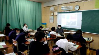 1年生家庭科で「衣服のお手入れ」を学習中。色物の服と他の衣類を一緒に洗濯して、色が付いてしまった経験はありませんか?衣服の特徴を知って、お洗濯することが必要ですね。