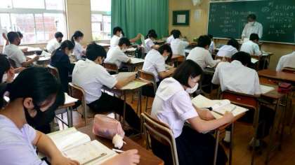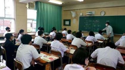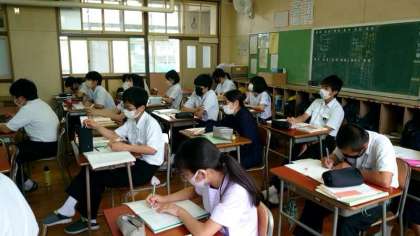 2年生数学科で文字式の計算問題に取り組んでいます。先生が次々に例題を示し、解き方を説明します。類題が中間テストにも出題されるようですよ。繰り返しおさらいしてくださいね。