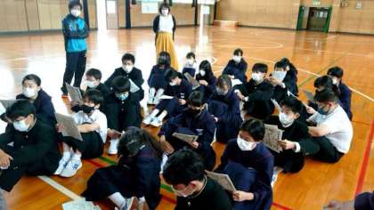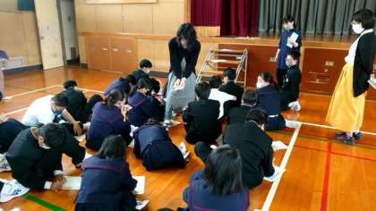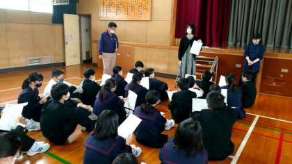 グループ散策の説明後、グループの班長さんが集まり、体験プログラムの抽選を行いました。イワナつかみなど、1ヶ所にグループが集中し、体験の順番待ちが生じないように、あらかじめ時間帯を決めておくとのこと。各グループで効率的な散策ルートを考えましょう。