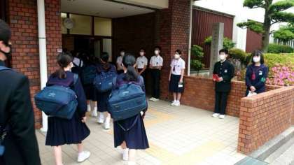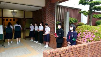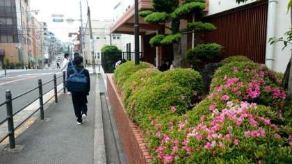 玄関前のツツジの花が見頃を迎えています。今朝も風紀委員さんが朝のあいさつ運動に取り組んでいます。元気よくあいさつを交わし、お互いに1日を気持ち良くスタートしましょう。