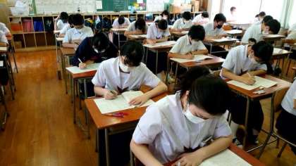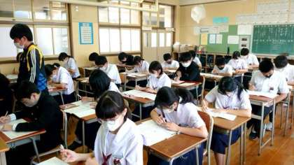 1時間目 理科のテストが始まりました。2年生の皆さんが問題を解いています。授業で習った「維管束」も出ているようです。教わった内容を思い出しましょう。
