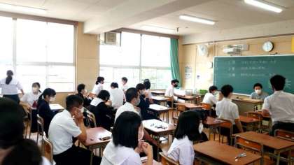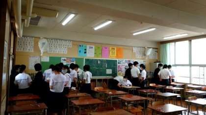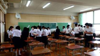 2時間目は英語のテスト。監督の先生が来られる前の教室では、3年生の皆さんが集まって問題を出しあっています。来週の今頃は、有明海で体験活動の真っ最中。今日・明日のテストを乗りきって、修学旅行を楽しみましょう。