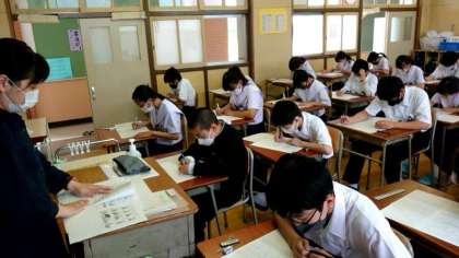 2時間目 英語のテストが始まりました。1年生の皆さんにとって初めてのテストです。英会話の問題もあるようですね。しばらくしたら、リスニングテストもありますよ。聞き逃さないよう、気をつけましょう。