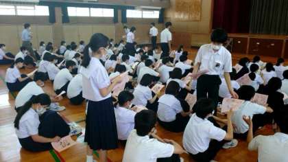 6月1日(水)〜2日(木)の2年一泊移住の説明会が行われています。旅のしおりが出来上がり、皆さんに配られました。行程や持ち物など、しっかりとチェックしましょう。
