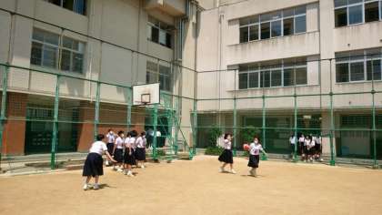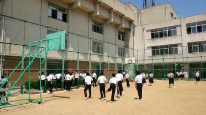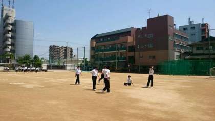 給食をいただいた後の運動場はボール遊びに興じる皆さんで賑わっています。雲1つ無い晴天の下、本当に楽しそうです。