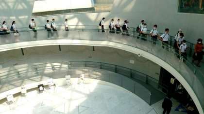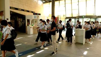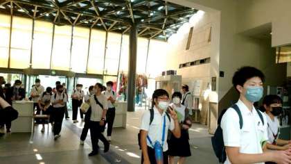 クラスごとに資料館に入っていきます。