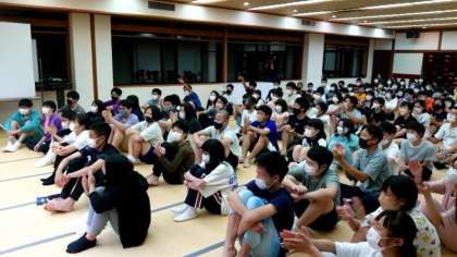 オープニングは、レクリエーション委員の皆さんのコントです。皆さん拍手・手拍子で熱演に応じます。