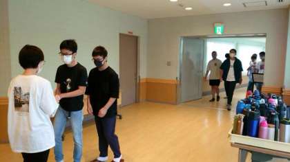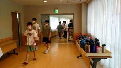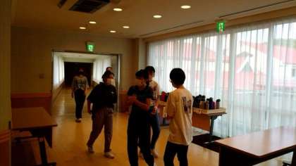 皆さんが朝食会場にやってきました。まもなく朝ごはんです。
