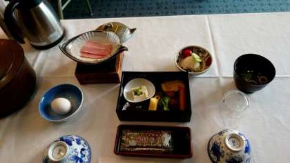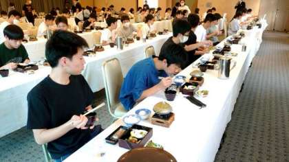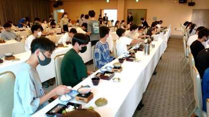 今朝のメニューはベーコンエッグやミートボール、ポテトサラダが並びます。皆さん美味しくいただきましょう。