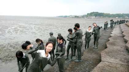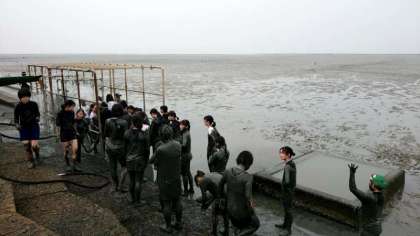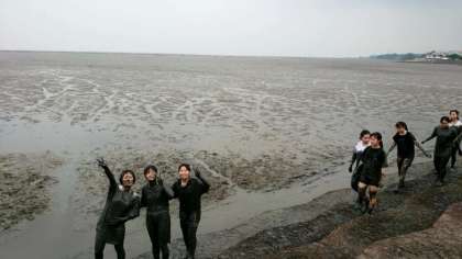 全てのプログラムが終わりました。泥んこの身体を洗っていただきます。