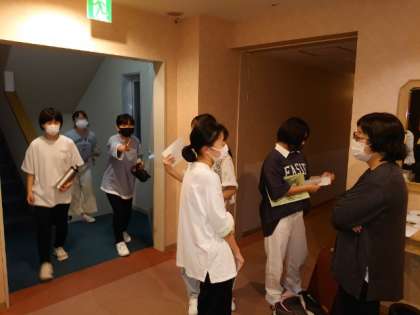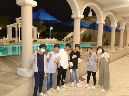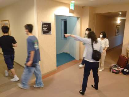 水筒置き場はプールサイドに面したお洒落なバンケットルーム前。迷子にならないでね。