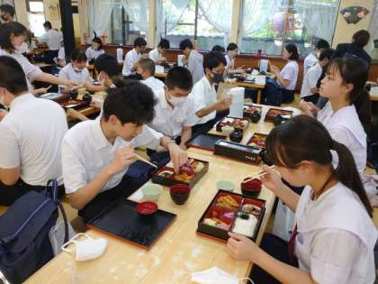 委員生徒の合図で昼食が始まりました。皆さん、美味しくいただいています。