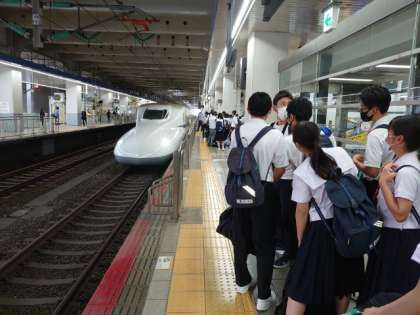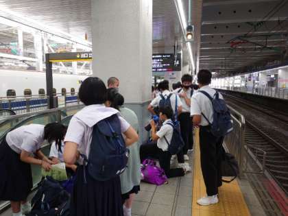 バスは無事博多駅に戻り、新幹線ホームにやってきました。14時43分に博多駅を出発し、新大阪駅には17時28分到着予定です。