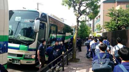 出発式を終え、いよいよバスに乗車します。