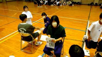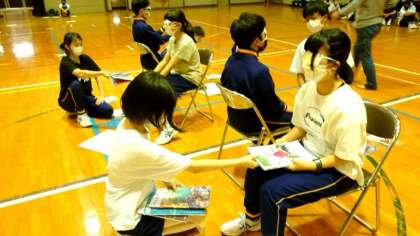 目隠しをして教科書を触り、何の教科か当てるゲーム。ふだんの学習習慣が試されます?
