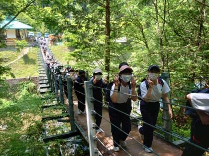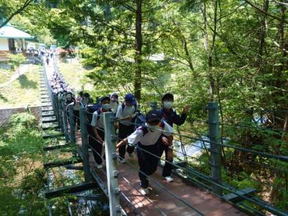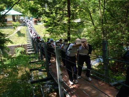 観音峯登山口からつり橋を渡りもいざ出発です。