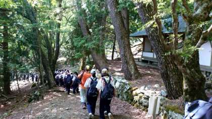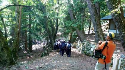 登山道の途中にある休憩所で一息つきます。