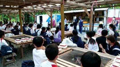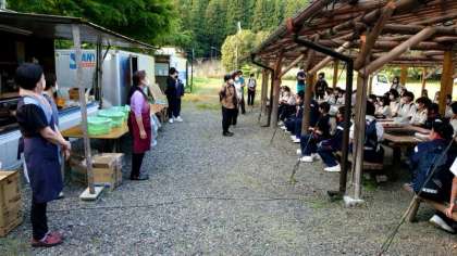 お肉を個食に分けたり、バーベキューの炭火を準備してくださった枡源旅館の方々にお礼をお伝えしました。