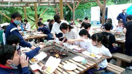 緑豊かな自然の中で仲間と一緒にいただく夕食。素敵な思い出になりますね。