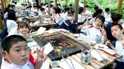 ごちそうさまの後は、天川村立体育館に移動して、お楽しみのレクリエーション大会です。